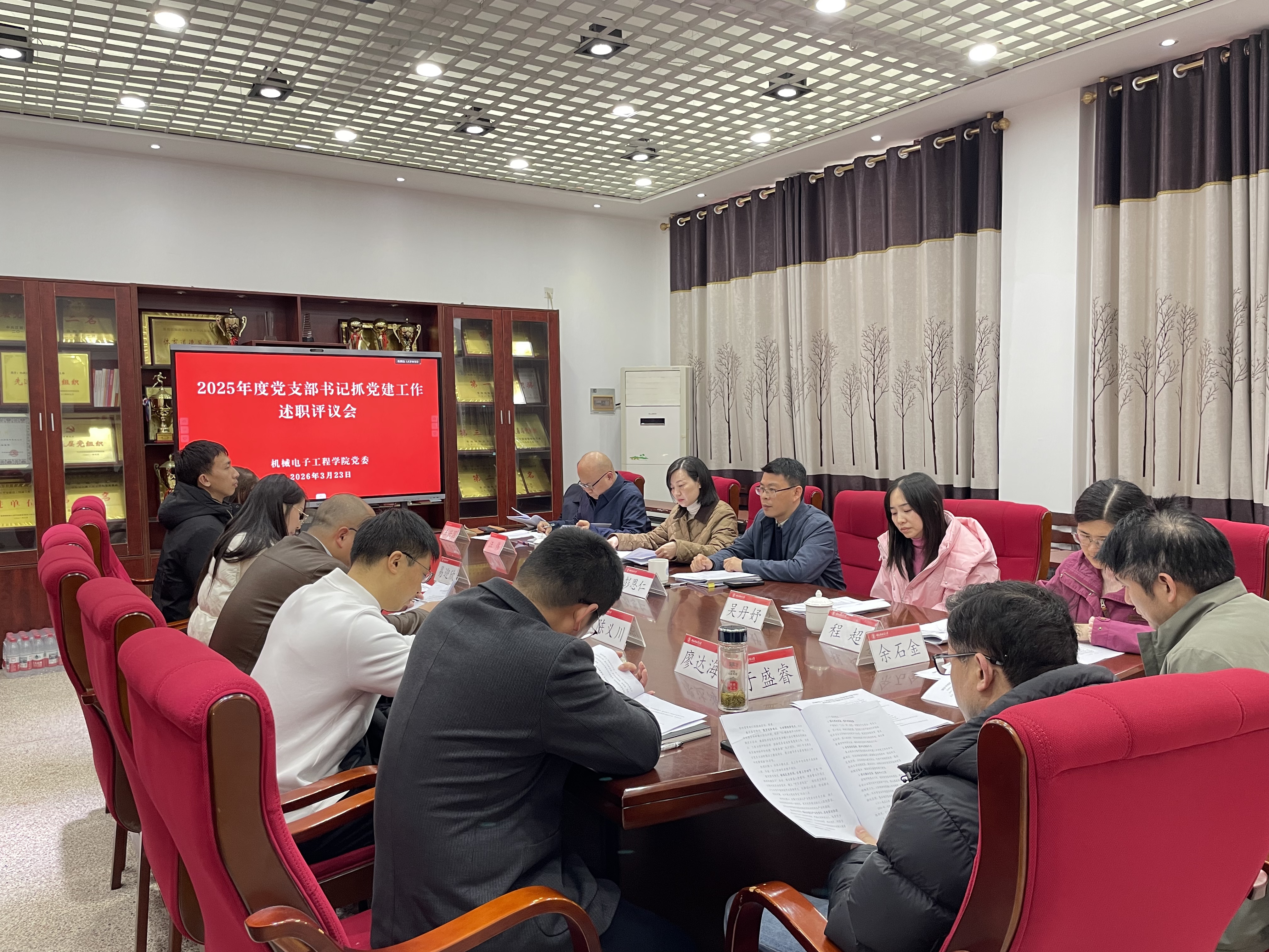 本网讯(李治家)3月23日,学院在党员活动室召开2025年度党支部书记抓党建工作述职评议会议。校党建指导组组长、体育学院党委书记王晓丽和组织员程超到会指导。学院党委书记彭恩仁主持会议并进行逐一点评,学院党委委员出席并进行现场打分评议。全体党支部书记参会并逐一述职。