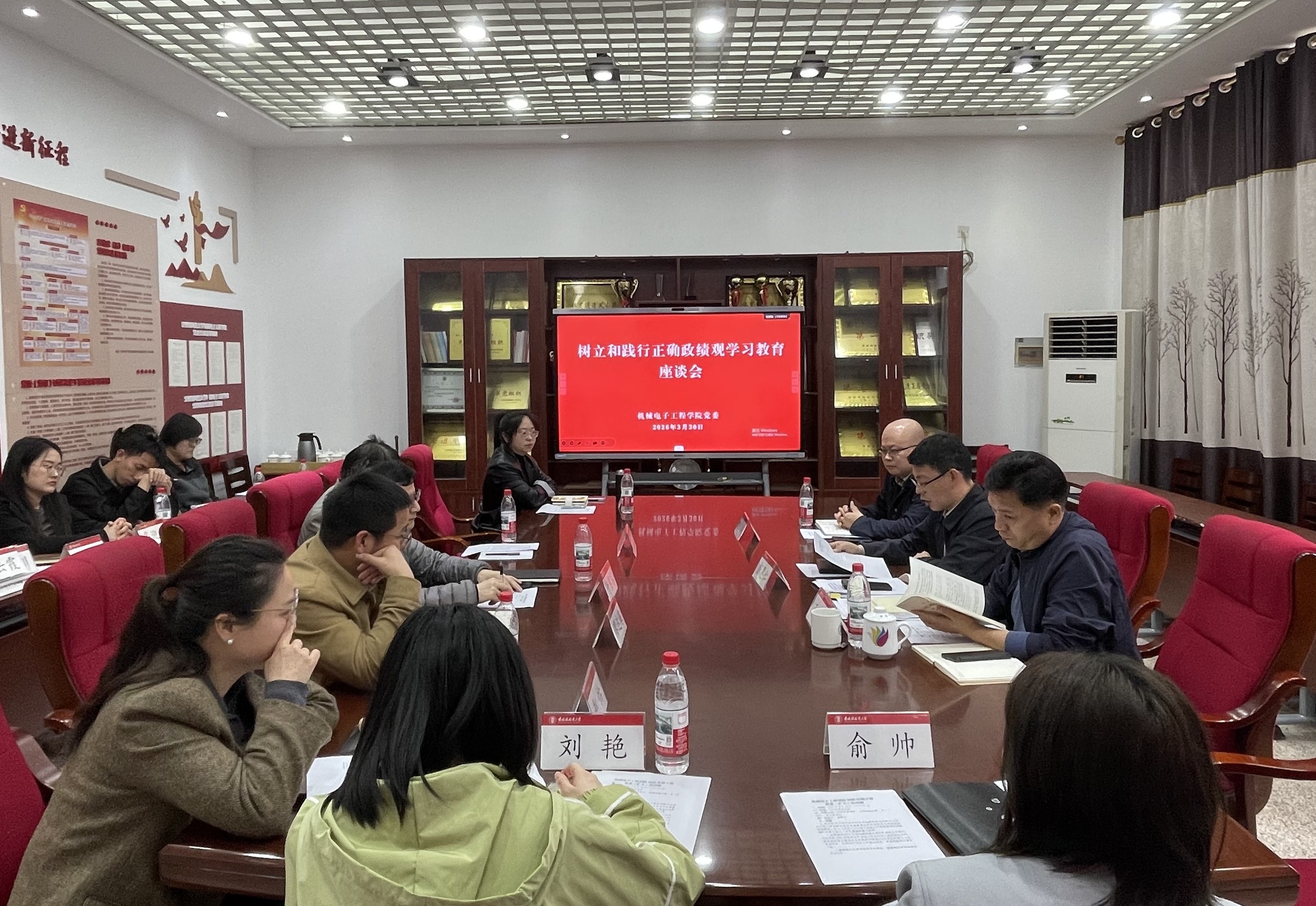 3月30日,学院党委书记彭恩仁,院党委委员、副院长(主持行政工作)汪伟,院党委委员、副院长王兴国,院党委委员于盛睿、余石金与学院科级干部、系(中心)主任和党支部书记座谈,通报学院开展树立和践行正确政绩观学习教育情况,并就推动学院内涵质量提升、校院二级管理体制改革等方面听取意见建议。